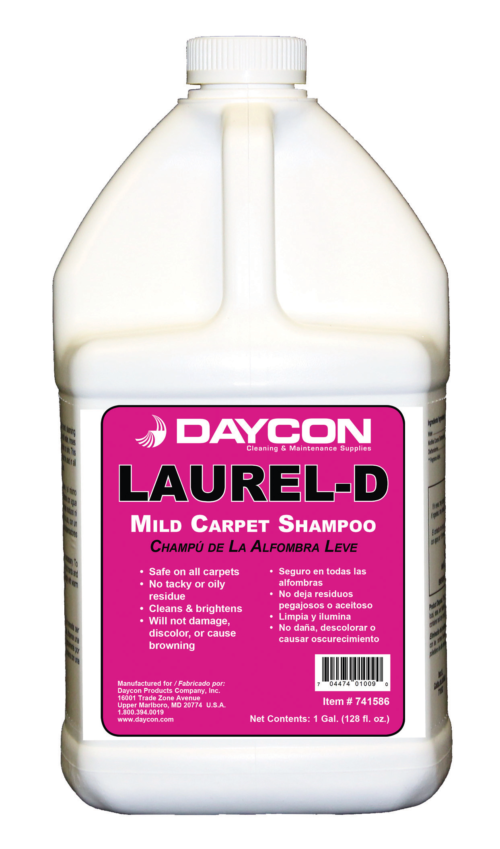 Laurel-D is a blend of detergents, foam boosters, soil suspending agents and brighteners formulated for the safe and effective shampooing of all types of carpeting. It can be used with either the rotary, bonnet or dry foam method. Also, it contains no solvents, acids or alkalis to affect colors, cause browning or damage fabrics. Laurel-D is effective in hard or soft, cold or warm water, and is non-corrosive.